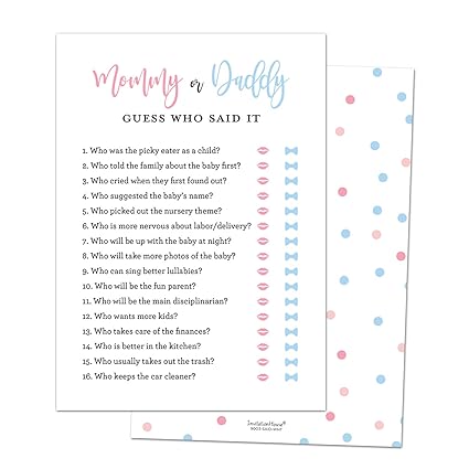 Invitationhouse 50 Gender Reveal Party Games Guess Who Mommy Or Daddy Game Mom Or Dad Quiz