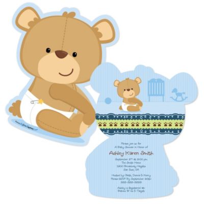 Baby Boy Teddy Bear Shaped Baby Shower Invitations Set Of 12