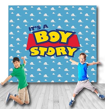 Menggege 6x6ft Vinyl It S A Boy Story Theme Photography Blue Background White Cloud Photo Backdrops For Boy Birthday Party Baby Shower Decoration