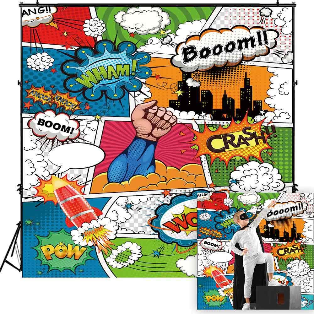 Funnytree 6x6ft Superhero Theme Party Backdrop Cartoon City Boy Baby Shower Birthday Photography Background Super Hero Cityscape Humor Abstract Banner