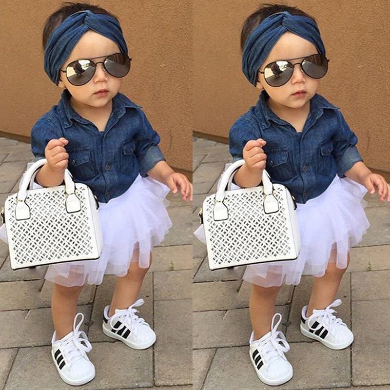 Newborn Toddler Girls Summer T Shirt Skirt Clothing Set Kids Baby Girl Denim Tops Shirt Tutu Skirts Party 3pcs Outfits Set