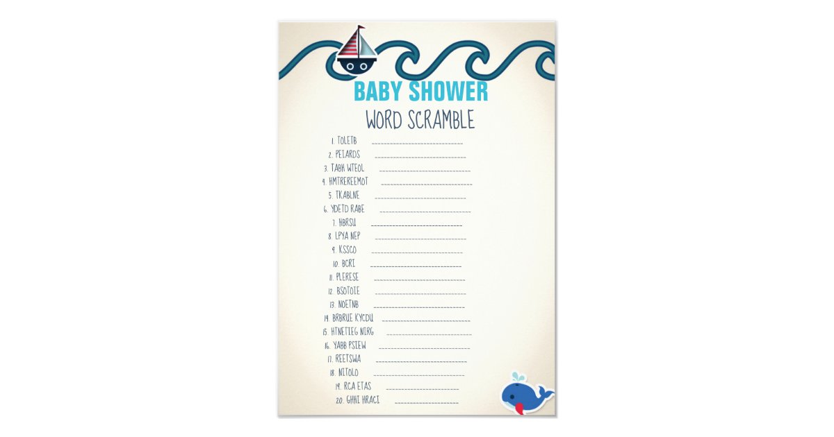 Nautical Baby Shower Word Scramble Game Invitation Zazzle Com