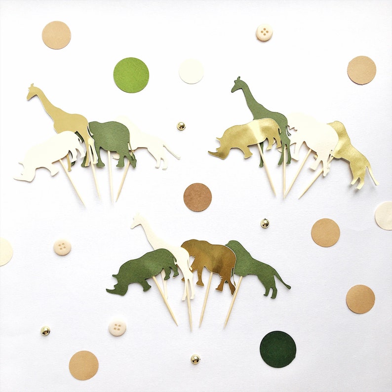 Gold Lion Safari Birthday Baby Shower Animal Cupcake Toppers Wild One Birthday Jungle Party Decoration Elephant Giraffe Rhino Zebra