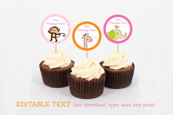 Girl Monkey Jungle Cupcake Toppers Mod Monkey Theme