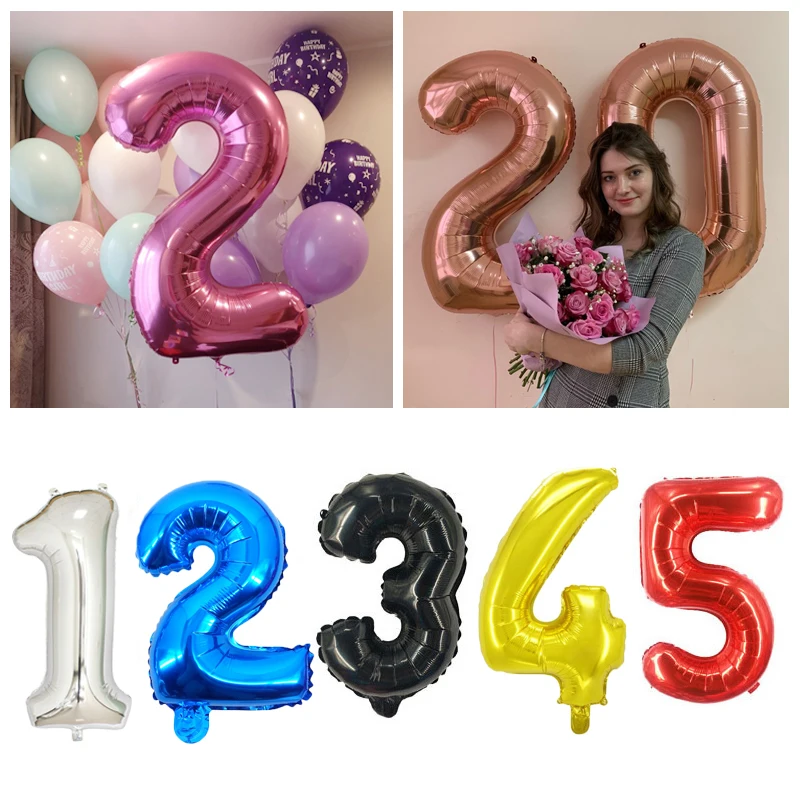 Globos Con Numero De Papel De Aluminio Negro De 40 Pulgadas De Oro Decoraciones De Fiesta De Cumpleanos Ninos Babyshower Nino Y Nina Bolas De