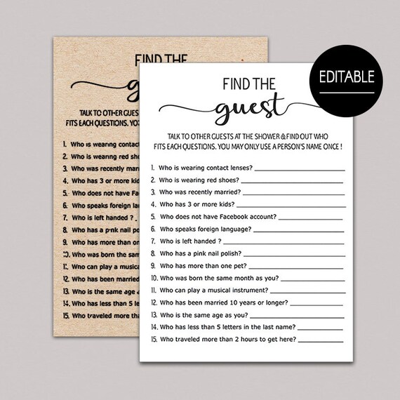 Find The Guest Game Bridal Shower Find The Guest Game Baby Shower Find The Guest Who Rustic Baby Shower Game Editable Shower Games B11