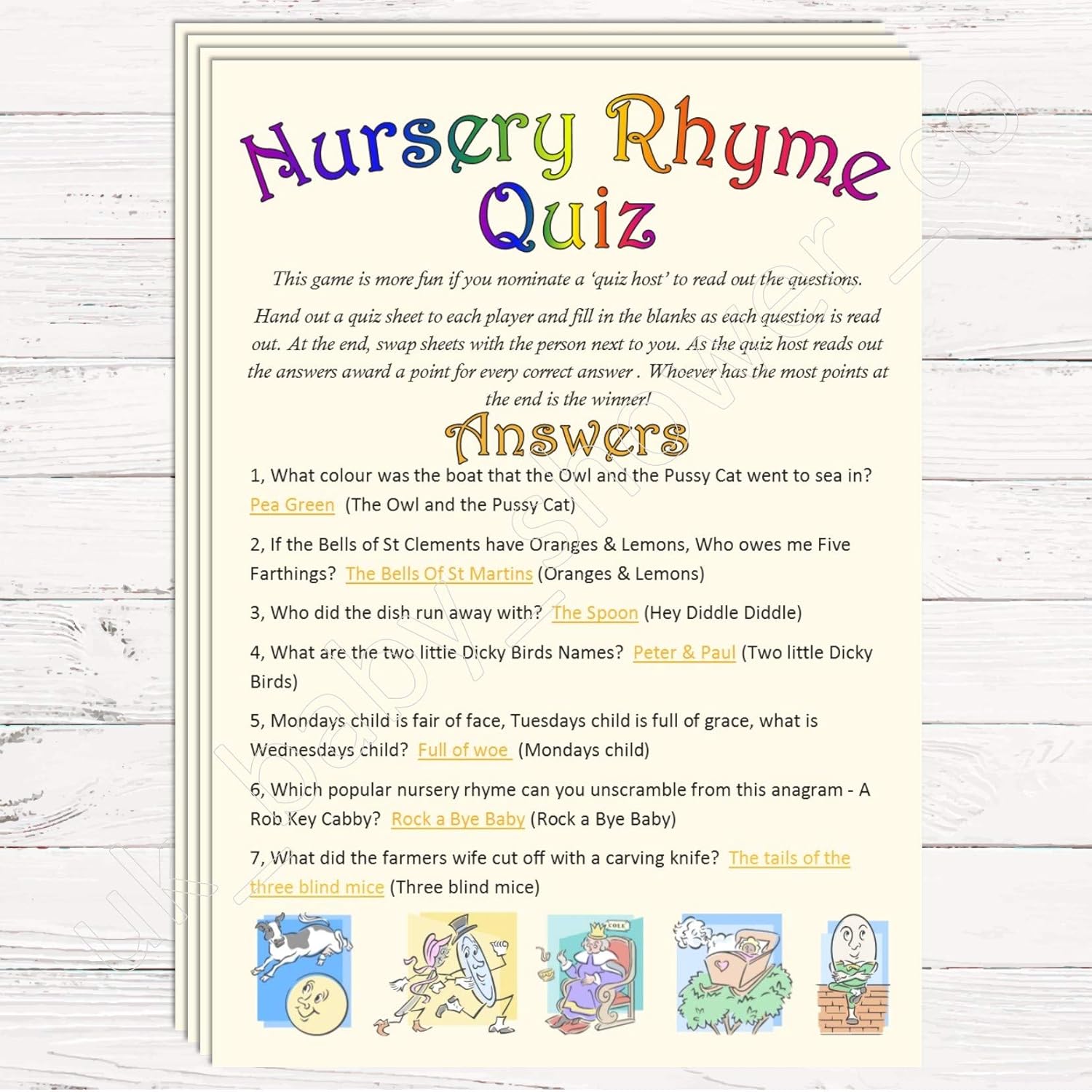 Baby Shower Game Nursery Rhyme Quiz 10 Guest Pack
