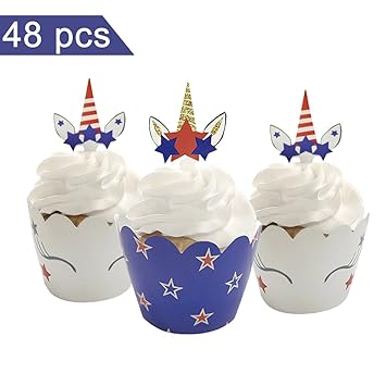 Unicorn Cupcake Toppers Wrappers For Celebration On 4th July Baby Shower Birthday Party Unicorn Theme