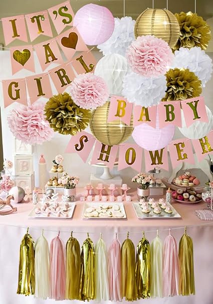 Pink And Gold Baby Shower Decorations For Girl Baby Shower It S A Girl Garland Bunting Banner Tissue Paper Pom Poms Flowers Paper Lanterns Paper