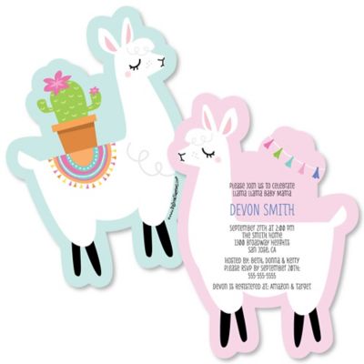 Whole Llama Fun Shaped Llama Fiesta Baby Shower Invitations Set Of 12