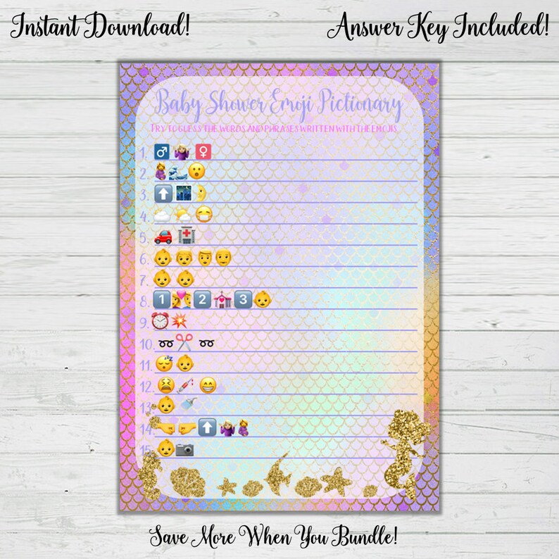 Mermaid Baby Shower Emoji Games Emoji Pictionary Baby Shower Game Rainbow Baby Shower Instant Download Digital Printable Gold Rainbow