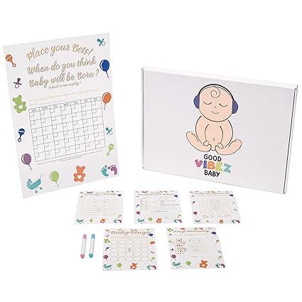 Goodvibezbaby Premium Baby Shower Games Contains 6 Games Bingo Predictions Emoji Pictionary Word Search Who Knows Mom Dad 50 Cards Each
