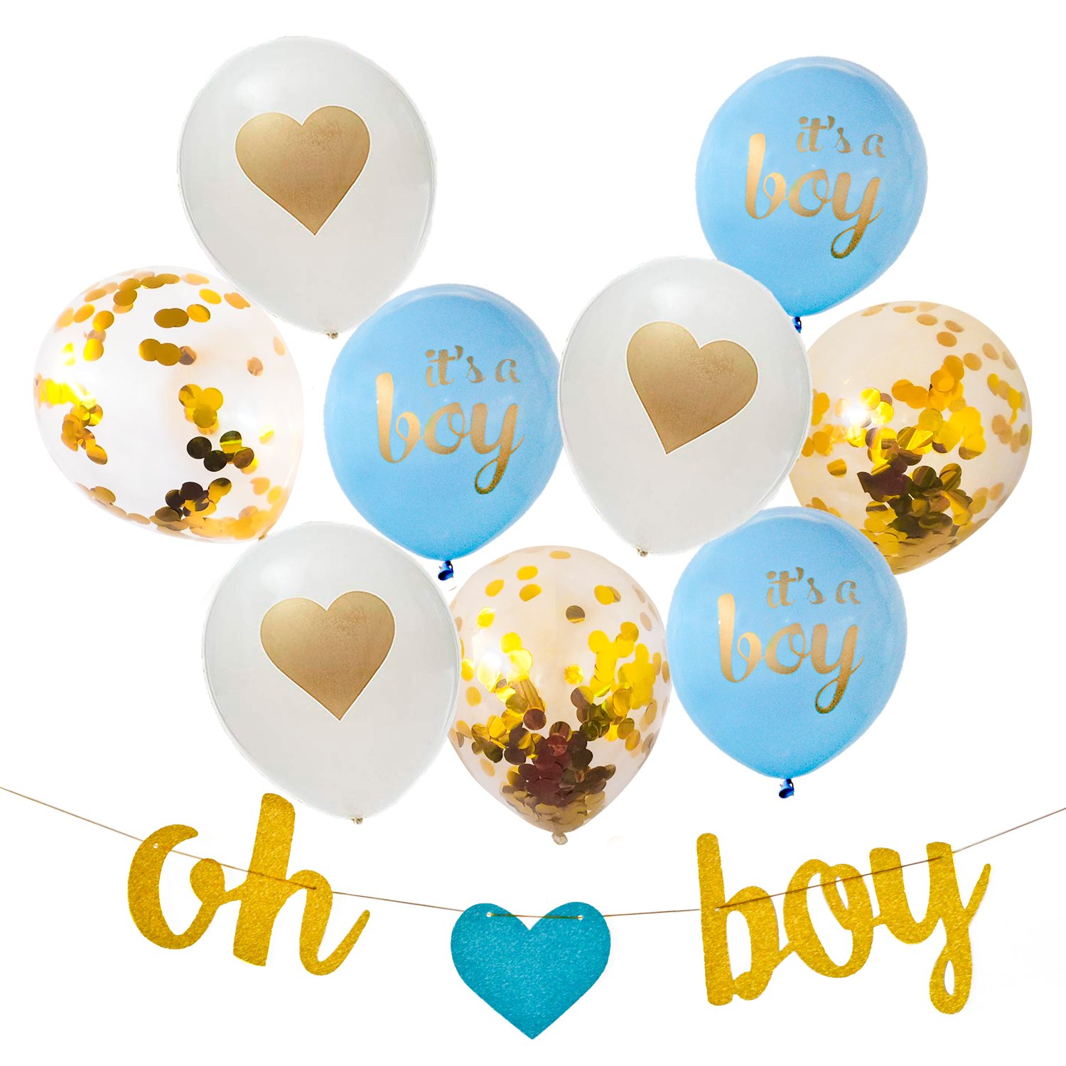 Baby Boy Shower Decorations 13 Piece Set Includes Oh Boy Banner Blue It S A Boy Balloons Confetti Balloons Gold Heart Balloons And Baby Shower