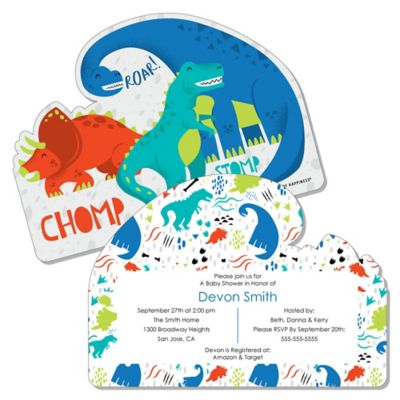 Roar Dinosaur Shaped Dino Mite T Rex Baby Shower Invitations Set Of 12