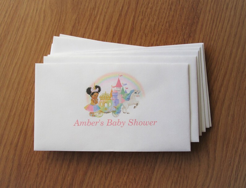 10 50 Player Personalized Pass The Envelope Baby Shower Game Very Fun African American Rainbow Unicorn Theme Picture