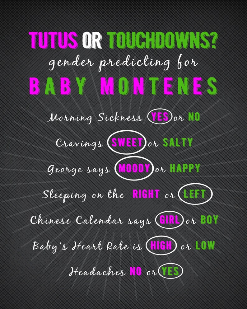 Old Wives Tales Personalized Printable Chalkboard Style Gender Reveal Baby Shower Baby Shower Games Touchdowns Or Tutus