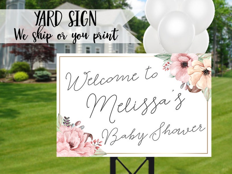Floral Baby Shower Sign Baby Shower Yard Sign Floral Gold Shower Sign Baby Shower Welcome Sign Floral Yard Welcome Sign