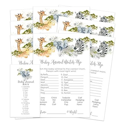 Fun Baby Facts Game Cards Pack Of 50 Baby Shower Games Ideas For Boy Or Girl Party Activities Supplies Safari Jungle Zoo Animals