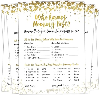 30 Who Knows Mommy Best Baby Shower Game Gold Baby Shower Games To Play For Girls Boys Coed Shower Party And Baby Sprinkle Baby Guessing Game