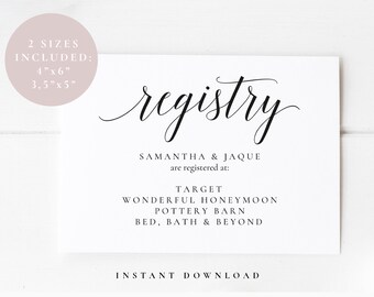 Wedding Registry Template Card Enclosure Baby Shower Gift