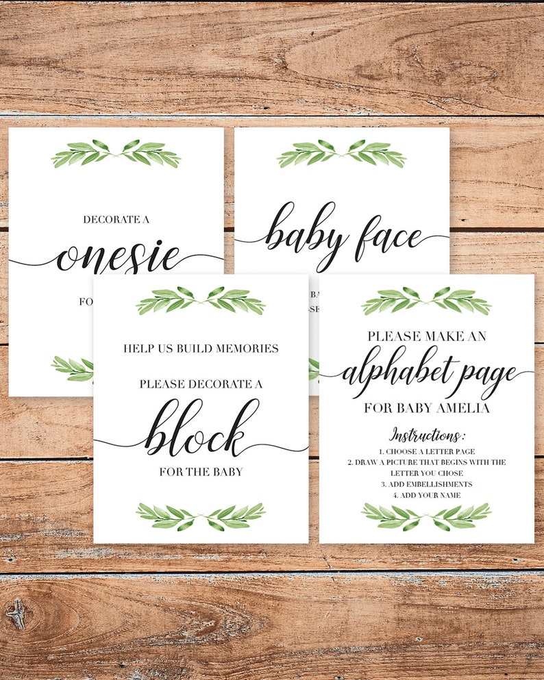 Greenery Baby Shower Activities Printable Simple Baby Shower Game Signs Decorate A Onesie For The Baby Face Game Abc Page Game Download Gl1