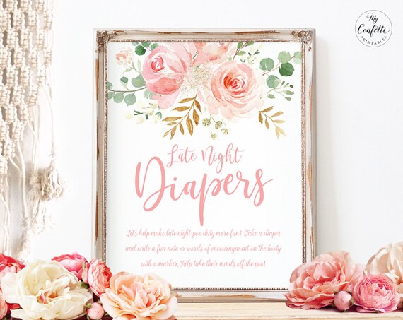 Baby Shower Game Sign Late Night Diapers Printable Baby Shower Game Baby Shower Activities Girl Blush Pink Floral Mcp820