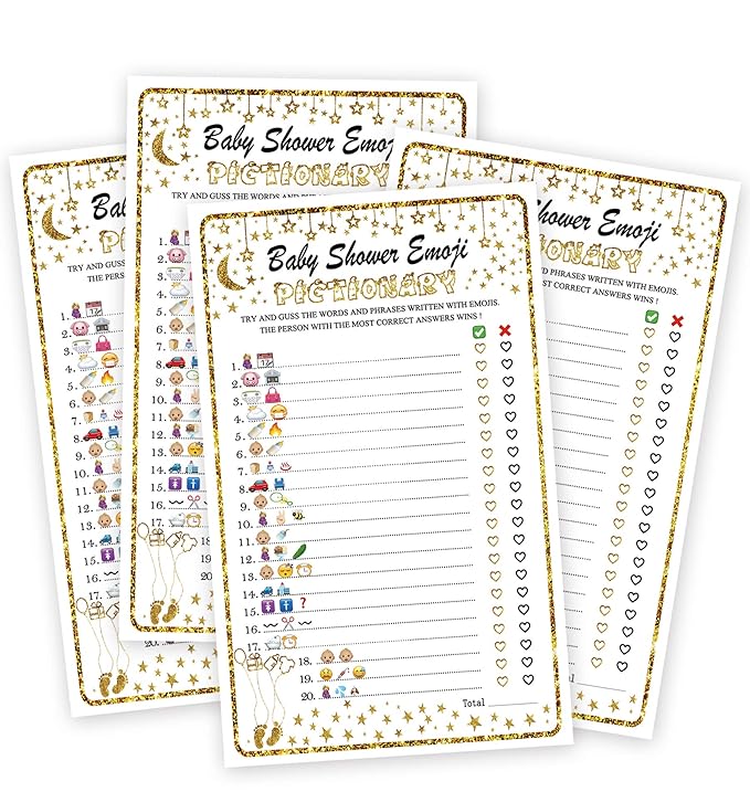 Jollylife Emoji Pictionary Baby Shower Games Party Gender Neutral Unisex Funny Guessing Cards Supplies