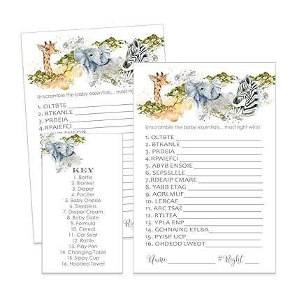 Jungle Animal Baby Shower Games Word Scramble Set Of 25 Cards