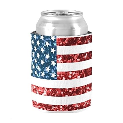 Amazon Com Glitter Sparkle Usa Flag Can Cooler Insulated