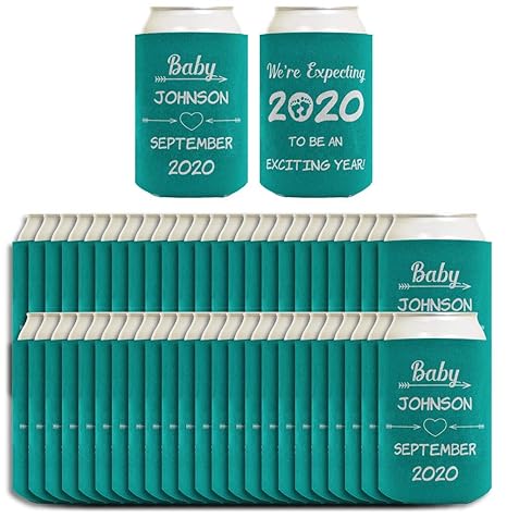 Customized Baby Shower Can Coolies Your Names Date Baby Shower Party Decorations Baby Shower Party Favors 48 Pack Can Coolie Drink Coolers Coolies
