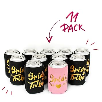 Bride Tribe Koozies 11pc Bachelorette Party Coozies Golden Glitter Print Team Bride Perfect