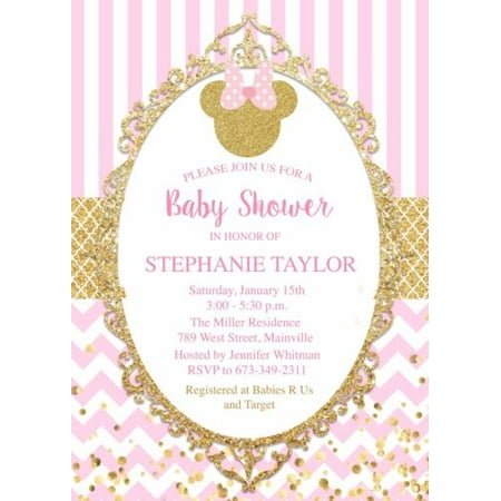 Minnie Mouse Baby Shower Invitations Pink And Gold Minnie Mouse Baby Shower Invitations