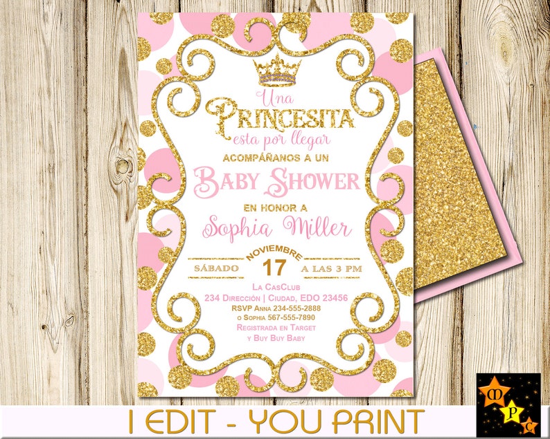 Spanish Princess Baby Shower Invitation Girl Pink Spanish