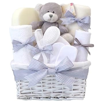 Baby Essentials Unisex Teddy Bear Hamper Gift Basket Baby