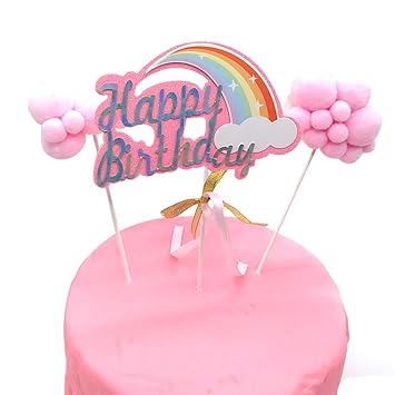 Rainbow Birthday Cake Topper Party Supplies With Rainbow Clouds Balloons Happy Birthday Cake Decorations For Rainbow Theme Party Baby Shower Wedding