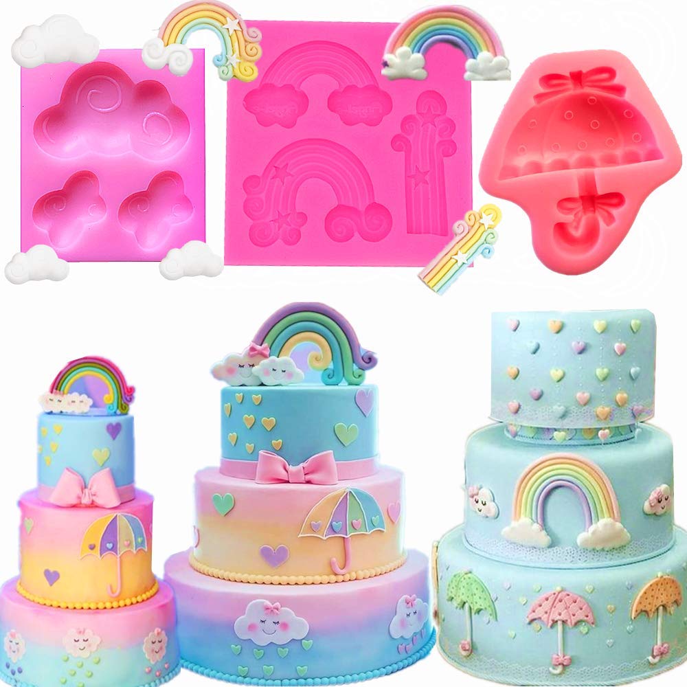 Set Of 3 Jevenis Rainbow Cake Decorations Rainbow Cake Mold Umbrella Cake Decoration For Rainbow Unicorn Baby Shower Cake Decoration Birthday Party