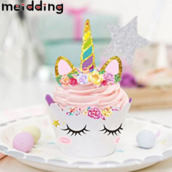 Unicorn Rainbow Cake Toppers Cupcake Wrappers Birthday Party Cake Decoration Baby Shower Unicorn Party Supplies
