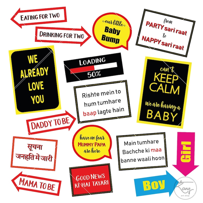 Pregnancy Photoshoot Props Indian Baby Shower Props Hindi Photobooth Props Bollywood Props Printable Baby Shower Party Props