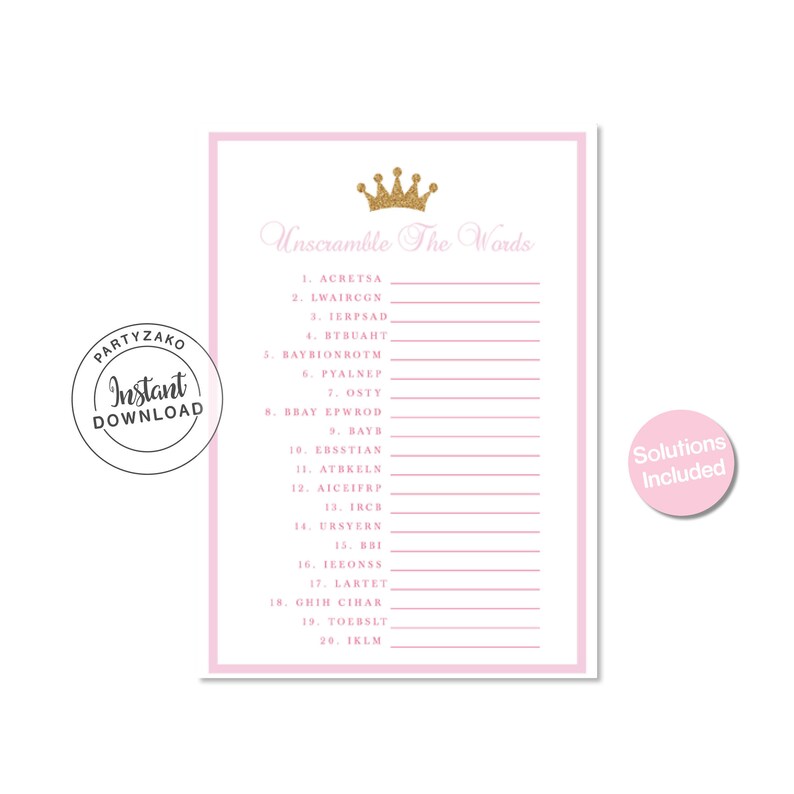 Princess Unscramble The Words Baby Shower Game Princess Unscramble The Words Baby Shower Game