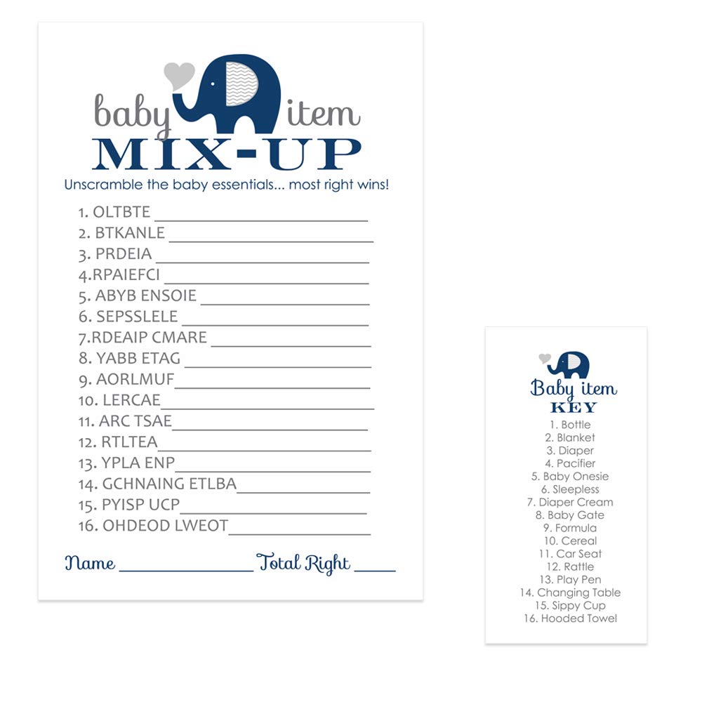 Amazon Com Navy Elephant Baby Shower Unscramble Games For