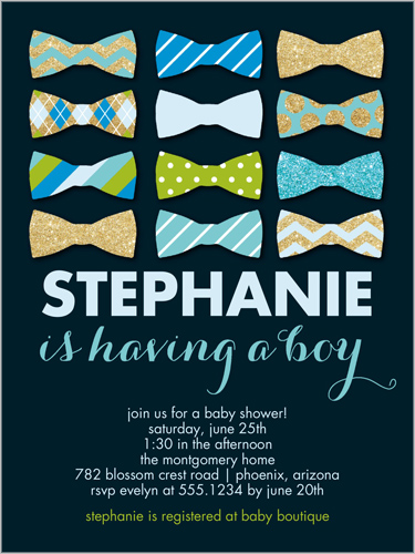 Bow Tie Sparkle 4x5 Custom Baby Shower Invitations Shutterfly