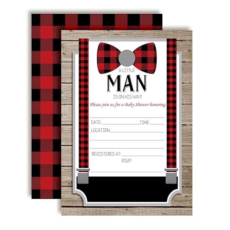 Little Man Themed Baby Shower Invitations Set Of 25 Invitations With Envelopes Bow Tie Mustache And Suspenders