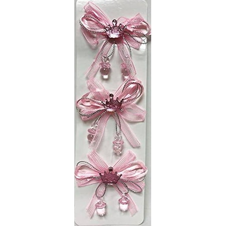Pink Bows Favor Princess Crown Baby Shower Theme Ribbon Accent Decoration 12 Ct