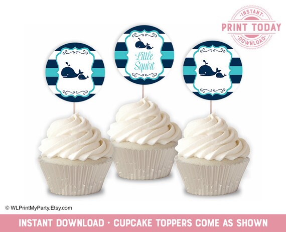 Gender Neutral Baby Shower Cupcake Toppers Whale Nautical