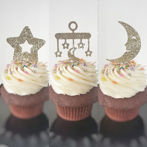 Baby Shower Cupcake Toppers Moon And Stars Cupcake Toppers Over The Moon Cupcake Toppers Gender Neutral Baby Shower Milestone Birthday