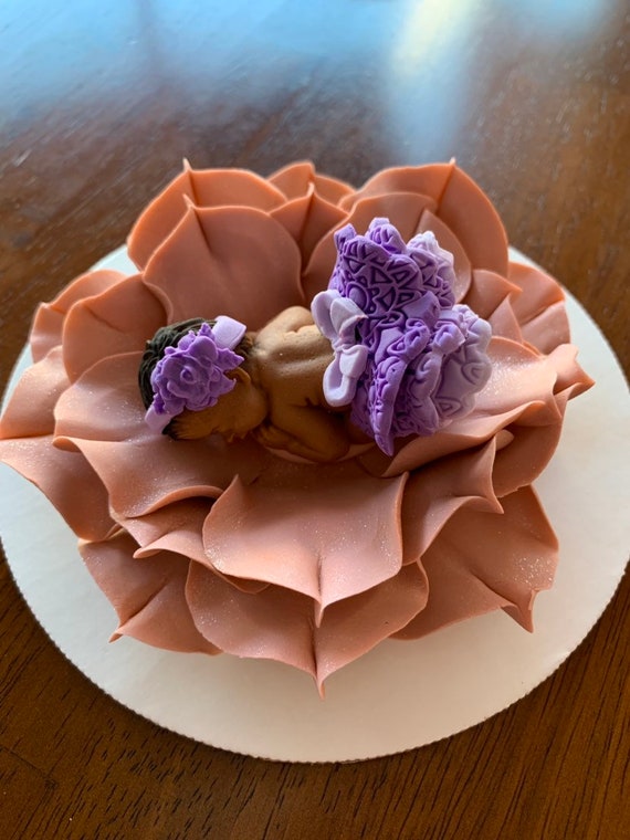 Lavender Baby Shower Cake Topper Fairy Baby On Bed Of Flowers Edible Fondant Gum Paste Girl Purple Orange Tutu Butterfly Sweetnewcreations