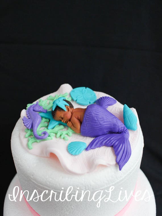 Mermaid Baby Shower Cake Topper Girl Purple Lavender 3d Edible Fondant Sea Shells Mermaid Baby Shower Decorations Inscribinglives