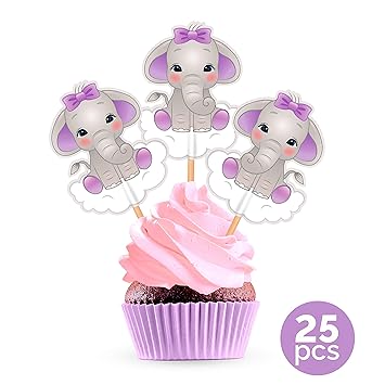 Purple Elephant Cupcake Cake Toppers Lavender Lilac Baby Shower Birthday Party