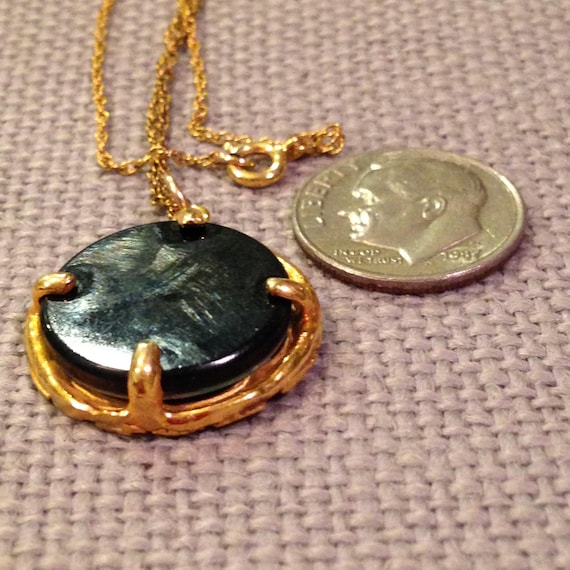 Vintage Black Australian Opal Pendant W Gold Nugget Chips Attached To The Goldfilled Bezel And A Goldfilled Chain Circa 1980 S