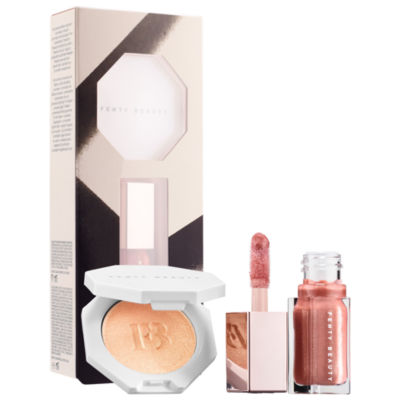Two of fenty beautys bestsellers team up in one irresistible travel friendly set for the ultimate killer radiance on the fly. Light up where you want when you want with the hyper portable bomb baby mini lip and face set.